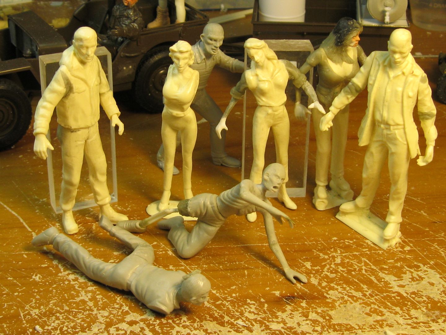 Here is a shot of the zombies, various stages of completeness, still got a ways to go yet. They are 1/24-1/25th scale, hope to have em on the market soon!!! I'm also working on some " good " guys too!!